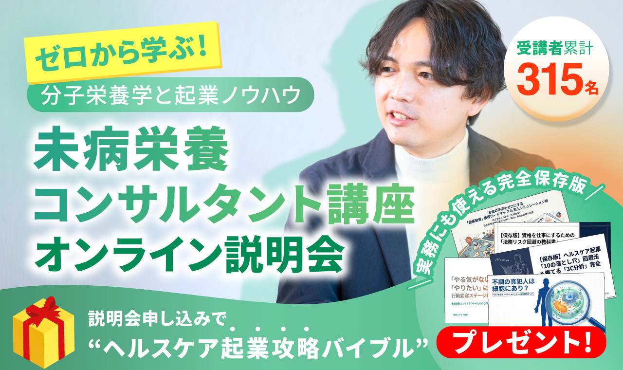 【起業攻略バイブル進呈】未病栄養コンサルタント講座 無料説明会